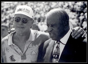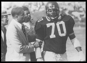 Franklin Roosevelt was America’s president when Eddie Robinson coached his first game. Fifty seven years later, Robinson left Grambling State University as the winningest coach in the history of college football. Initially a coach for a segregated society, he has helped football transcend race in America he loves and treasures. Yet institutionalized racial barriers kept Robinson a secret from white America for more than twenty-five years until Howard Cosell did an ABC special on Grambling in the late 1960’s. Outside of the world of sport, white America still barely knows him. In the African-American community, he is very likely the best-known coaching America. He is surely the most beloved.
